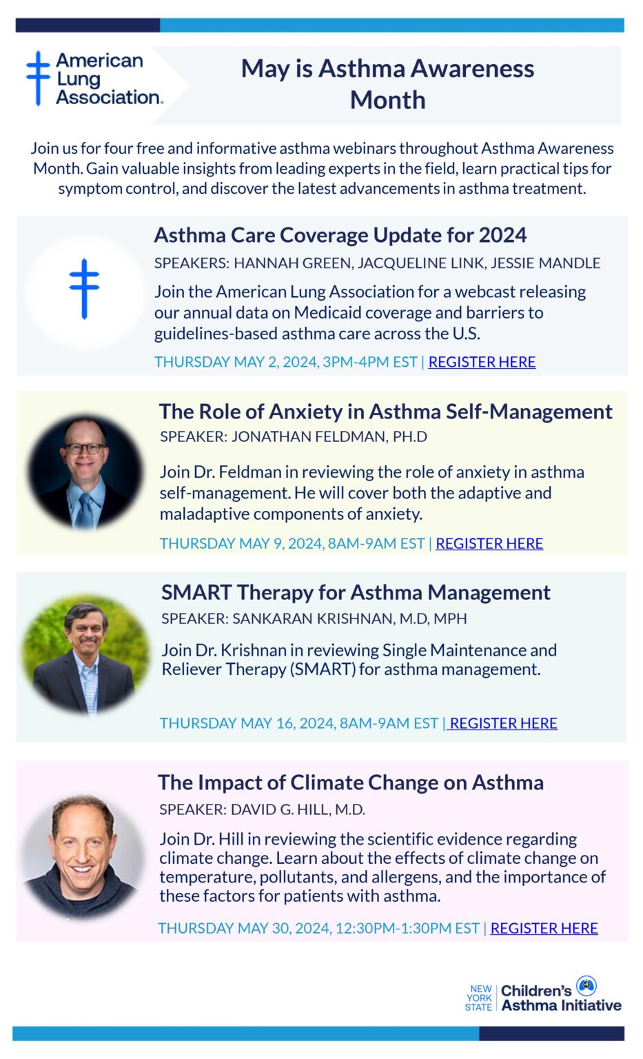 Check back regularly for updated training, events, and opportunities. Find resources for individuals with asthma, caregivers, clinicians, training facilitators, and more.